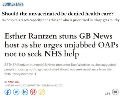 Jurnalistul Piers Morgan a fost de aceeași opinie, că persoanelor nevaccinate este necesar să li se refuze îngrijirea de urgență.