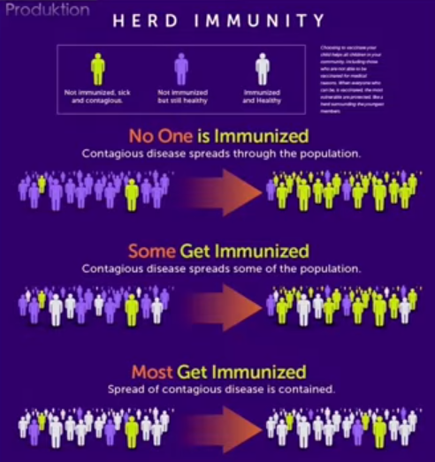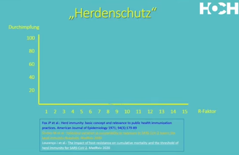 De aceea, concluzia întregii prelegeri este că este necesar sa fie afirmat clar: imunitatea de turmă nu este cazul să fie folosită deloc în legătură cu ratele de vaccinare și vaccinarea populației. Aceasta are legătură exclusiv cu trecerea prin boli naturale. Cu o rată de boală de 50-60% – care este, de fapt, relativ scăzută – chiar și un grup ar deveni imun. Asta înseamnă că aceste rate ridicate de vaccinare, chiar dacă cineva le-ar accepta, de 80%, care pot fi atinse doar prin obligații de vaccinare, nici măcar nu sunt necesare pentru ca epidemiile să nu mai apară. Pentru 50-60%, nu ar fi nevoie să se introducă nicio formă de constrângere pentru o singură boală.
