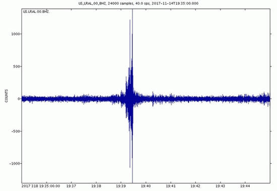 Graphique d’une rafale détectée lors de la retraite de l’USGS Lakeview près de Centerville, le 14 novembre à 13h39, heure locale. La cause du son reste inexpliquée. (Crédit : NASA).
