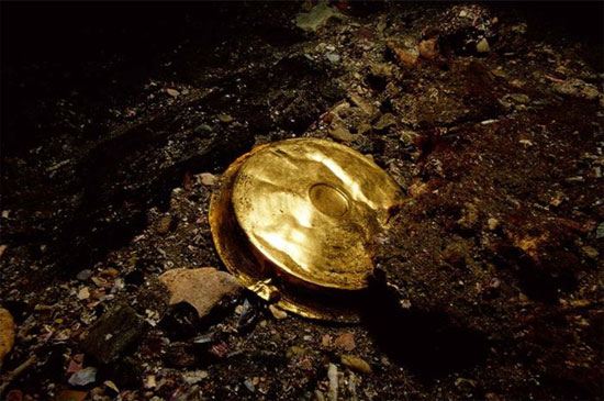 Ici les plongeurs inspectent soigneusement une pierre remplie de fragments d’or qui datent du 6ème siècle avant JC.