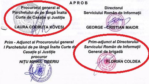 - PROTOCOLUL CARE A NENOROCIT JUSTIŢIA – Kovesi, Maior, Coldea şi Niţu i-au transformat pe procurori în informatori ai SRI. Procurorii au primit ordin, prin protocolul 003064 din 2009, să livreze SRI date din dosare, operaţiune care încalcă flagrant art. 7 din Legea 303/2004. Toţi procurorii din echipele mixte trebuie identificaţi şi daţi afară din magistratură. Protocolul nu avea voie să încalce legea!