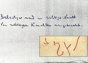 Celebra inscripție referitoare la „Belsatzar” găsită pe pereții Casei Ipatiev.