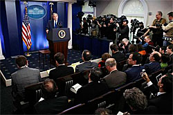 Walter Pincus: Mass-media este condiţionată de televiziune. Din acest motiv revin mereu la Deaver. El este cel care a aranjat lucrurile pentru ca presa scrisă să îşi modeleze paşii după cei ai televiziunii. După primele două sau trei conferinţe de presă ale lui Ronald Reagan, începuserăm să scriem articole evidenţiind toate greşelile pe care el le comenta. Iar scrisorile au început să curgă: „De ce vă luaţi de el?” De atunci, am renunţat complet la acest gen de practici. Am scris destule articole critice după discursul lui Powell la ONU şi uneori ne mai asumăm riscuri atunci când Preşedintele ţine un discurs, dar în majoritatea timpului, nici măcar acest efort nu mai există. Când George W. Bush a ajuns la putere, teoria lui Deaver era atât de bine întipărită, încât când Preşedintele avea o problemă se spunea: „Nu are legătură cu mesajul său.” Gândiţi-vă puţin la ce vrea să spună asta. Este vorba despre strategia sa de comunicare: un Preşedinte bun este un om care nu se îndepărtează niciodată de mesajului zilei. La începuturile sale, Clinton înnebunea pentru că era acuzat de faptul că face prea multe lucruri într-o singură zi. Presa spunea despre el că este incapabil să se concentreze pe un singur subiect. Era o adevărată nebunie!