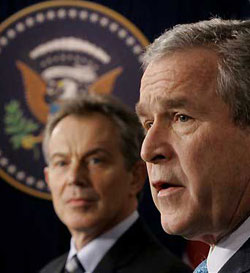 Într-adevăr, în octombrie 2001, „războiul contra terorii” a început cu bombardarea Afganistanului de către trupele americane, aliate cu cele britanice. Blair ştia foarte bine că va urma Irakul şi că îl va sprijini pe Bush. Totuşi până spre finalul lui 2002, a declarat în continuu: „Marea Britanie nu a decis încă ce poziţie să adopte în ceea ce priveşte Irakul.”