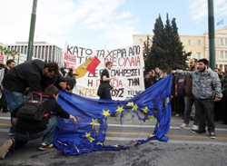 Întrucât înseși bazele societății grecești sunt subminate, traumatismul este colectiv. Aceste planuri de austeritate, care nu servesc la nimic şi a căror ineficiență a fost recunoscută chiar de către FMI, seamănă cadavre nu numai în Grecia, ci şi în Spania, în Franţa şi în Bulgaria. Jertfele cu gloanţe şi sinuciderile se succed în faţa parlamentelor, a primăriilor sau a agenţiilor pentru ocuparea forţei de muncă. Deveniţi martiri, aceşti cetăţeni copleşiţi de datorii au ales o formă de protest extremă.