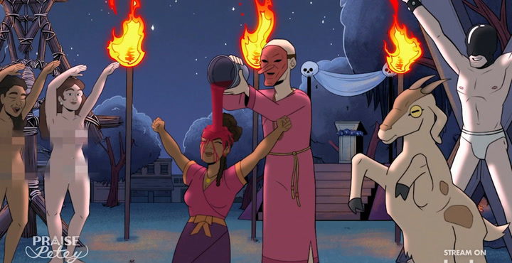 Un nou show Disney numit „Praise Petey” (Lăudată fie Petey) a avut premiera pe 21 iulie pe Freeform și Hulu. Este vorba despre o tânără care moștenește „un cult de sacrificiu uman și de băut sânge al cărui logo are ochiul atotvăzător”.