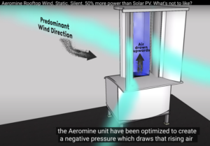 „Tehnologia brevetată de Aeromine aduce performanţa energiei eoliene pe piaţa generării la faţa locului, atenuând constrângerile moştenite de la turbinele eoliene care se învârt şi de la panourile solare mai puţin eficiente”, anunță compania.