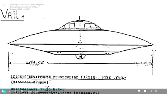 Jasson : Voire plus, car il y a des articles de presse sur des navires voyageant le long de la côte ouest et aussi loin que le Texas. Et il y avait beaucoup d’informations sur des technologies avancées ou anti-gravité remontant aux années 1800. Les avancées allemandes de cette technologie au moment de la Société du Vril et autres, venaient des informations transmises, les Allemands ont eu plus tard des contacts directs avec les Dracos et des interactions directes et individuelles avec ces races extraterrestres. Ça incluait recevoir de l’aide pour ces projets, pour des technologies dont ils avaient besoin, pour la technologie d’effacement de la mémoire, toute une série de médicaments divers, de transport, de moyens de communication, d’armements. Les extraterrestres plutôt positifs qui tentaient de faire avancer la race humaine, ils fournirent certaines technologies anti-gravité. Ils ne sont pas… Les Allemands… Ils n’ont pas reçu de technologie destructive de ces extraterrestres. Ils ont eu les armes et les technologies d’armement d’autres aliens, des Dracos, en particulier.