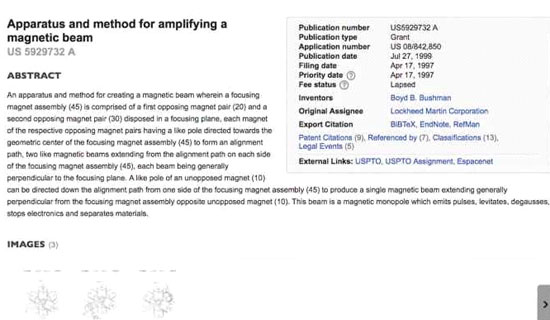 David: Maintenant, la raison pour laquelle je mentionne ceci, est-ce que vous pourriez vérifier si ces brevets étaient retenus, dans le cadre de la sécurité nationale et, par conséquent, nous ne pourrions peut-être pas les trouver, parce qu’ils pourraient faire partie de la technologie classifiée? Et, pourrait-il y avoir assez de choses produites par Lockheed, qui ne soient pas classifiées, ou du moins, certains de ces brevets pourraient-ils être retracés?