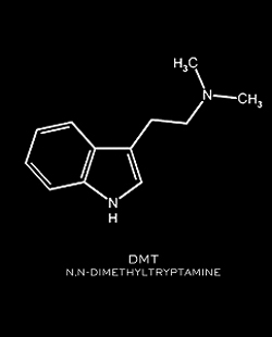Dimetiltriptamina sau N,N-dimetiltriptamina, pe scurt DMT, este un compus halucinogen din familia triptaminei. DMT este prezentă, în mod natural, nu numai în plante, ci şi în organismul unor mamifere şi mai ales în corpul uman, fiind o substanţă derivată a unui aminoacid esenţial pentru metabolismul uman, triptofanul. Documentarul susţine ipoteza producerii lui, în fapt, de către glanda pineală sau epifiza.