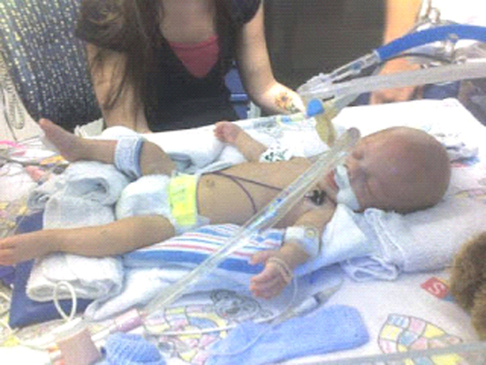 Începând din primele zile de viaţă a suferit de eritem alergic şi o formă de icter ce a durat mai bine de 3 săptămâni, când în urma unui episod de apnee, la nicio lună de viaţă!!, a fost internat în spital. A stat internat peste noapte, pentru a fi supravegheat, externat a doua zi, iar în nicio săptămână starea i s-a deteriorat atât de mult, încât a fost iar spitalizat, iar peste 2 zile l-au mutat de urgenţă pe secţia ATI, unde a fost intubat, fiind alimentat prin gavaj. Da, a stat la terapie intensivă, cu foarte mici şanse de supravieţuire… opinia tuturor medicilor ce mi-au văzut copilul.