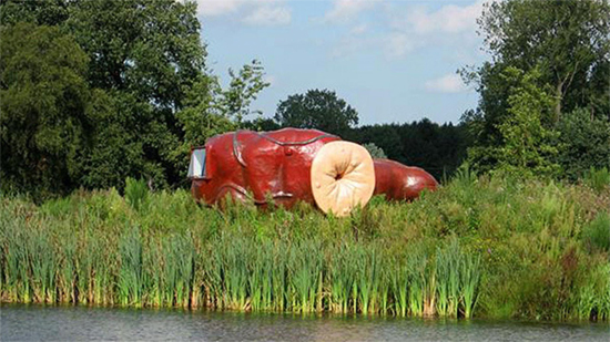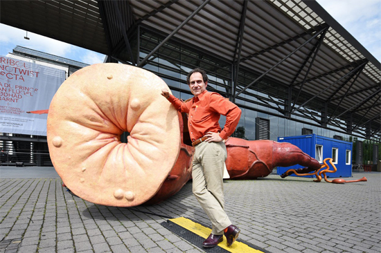 Voilà l’artiste néerlandais Joep van Lieshout tout fier devant son anus géant. Eh oui, car l’artiste est un grand fan des anus au point d’avoir construit, tenez-vous bien, un hôtel en forme d’anus en pleine nature.