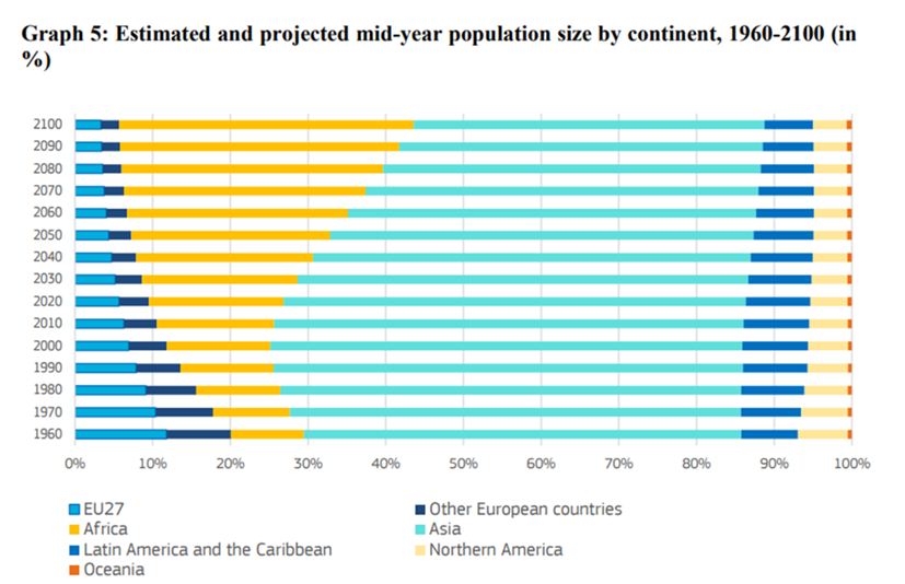 Într-un document al Comisiei Europene din ianuarie 2023, se preconiza o scădere până în anul 2030 a populației unor țări membre ale UE: Bulgaria, Grecia, Croația, Italia, Letonia, Lituania, Ungaria, Polonia, precum și România. În schimb, în altele ca Danemarca, Irlanda, Cipru, Luxemburg, Malta și Suedia, se așteaptă o creștere a populației.
