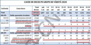În anul 2020, procentul deceselor covid-19 în grupa de vârstă 0-35 ani a fost de 0,768% din totalul deceselor covid-19 (132 din 17185), în grupa de vârstă 0-45 ani de 2,61% (448 din 17185) din totalul deceselor covid-19, iar în grupa de vârstă 0-69 ani de 39,68% (6819 din 17185) din totalul deceselor covid -19.