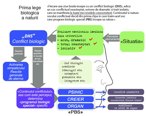 Adesea, bolile apar fără simptome evidente, atunci când anumite evenimente existenţiale neaşteptate (şocuri conflictuale) declanşează acele programe neuro-psiho-somatice care duc la modificarea ţesuturilor (fie depleţie celulară, fie hiperfuncţie).