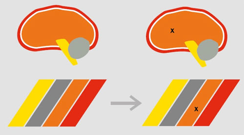 Comutarea de la metabolismul aerob (respiraţie) la metabolismul anaerob (fermentaţie) în momentul declanşării şocului conflictual produce în creier cercuri, „ţinte de tir” negre tipice (care pot fi văzute doar la CT – tomografie computerizata – fără substanţă de contrast), în baza cărora se poate determina ce fel de programe neuro-psiho-somatice sunt active în organism în acel moment şi unde anume. Dr. Hamer, cel care le-a descoperit, le-a denumit „focare Hamer”.