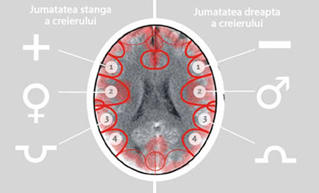 În organism şi în trunchiul cerebral, funcţiile feminine (de asimilare) ale metabolismului se află pe partea dreaptă, iar cele masculine (de cedare/ eliminare) pe partea stângă.