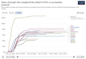 România are deci o mortalitate cumulată similară cu cea din Gibraltar, Anglia, Statele Unite și Italia (țări puternic vaccinate) și mai mică decât în Ungaria, Croația, Slovenia, Cehia, Letonia, Slovacia, Grecia, Lituania, țări cu un procent de vaccinare cu 20-30% mai mare decât țara noastră. Interesant este că dacă suprapunem cele două grafice observăm că de regulă campaniile de vaccinare se însoțesc cu o creștere a mortalității prin covid-19, ceea ce ridică din nou semene de întrebare cu privire la eficiența și siguranța vaccinului.