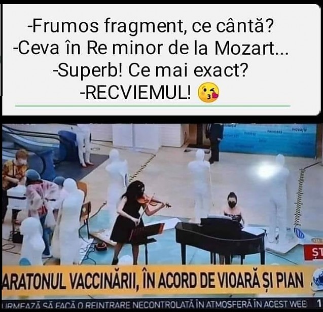 După vaccinarea vampiristă la castelul Bran şi piesa „Dineu cu Proşti” pentru vaccinaţi, la Bucureşti s-a cântat Recviemul pentru maratoniştii vaccinării. Aceasta este deja viral pe Facebook