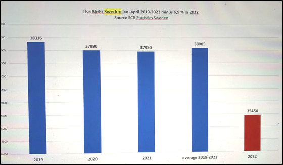 Graficul cu rata natalității în Suedia arată aproape la fel.