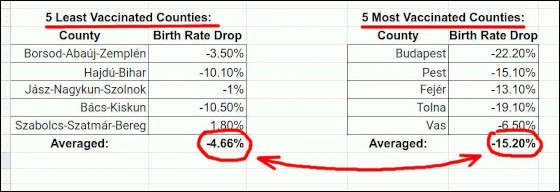 „În ianuarie anul acesta s-a petrecut ceva ce nu a mai avut loc de zeci de ani. Rata natalității a scăzut cu 20% față de aceeași perioadă a anului trecut. Și ceea ce este și mai îngrijorător este că și fertilitatea a scăzut – ceva nemaivăzut din 2011… [Un] cercetător de la Institutul de Economie KRTK subliniază că această scădere drastică a avut loc la doar nouă luni după ce au început vaccinările în masă anti-covid în Ungaria.”