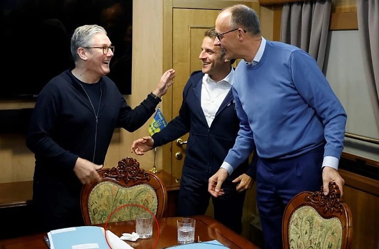 Un videoclip viral din luna mai îl arată pe președintele francez Emmanuel Macron cum ascunde un obiect alb (asemănător unei mici punguțe), în timpul unei întâlniri în tren cu prim-ministrul britanic Keir Starmer și cu cancelarul german Friedrich Merz. Speculațiile online au luat amploare, mulți sugerând că ar fi fost vorba de cocaină. Imaginile îl surprind pe Macron măturând obiectul de pe masă cu mâna dreaptă, înainte de a-l ascunde cu mâna stângă sub masă. În mod previzibil, „verificatorii de fapte” din Franța și UE, precum și Palatul Elysée, s-au grăbit să respingă afirmațiile, insistând că era vorba doar de un șervețel sau de altceva la fel de inofensiv.