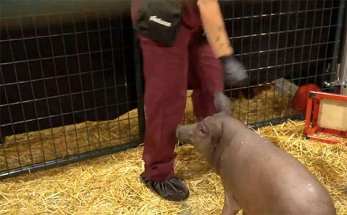 Gertrude mène sa vie de cochon sans savoir qu’elle a un implant dans le cerveau qui transmet des informations à des ordinateurs. © Neuralink, AFP