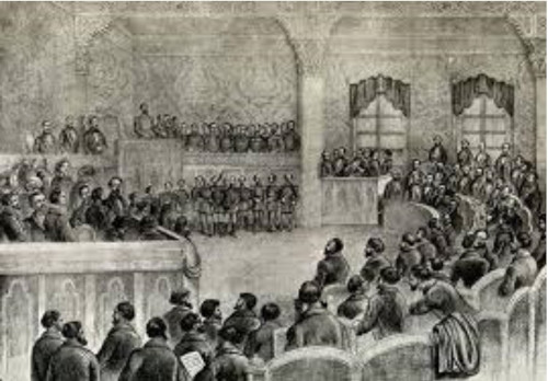 Drept că în realitate era altfel, căci România n-a fost niciodată vasală Turciei; dar în ochii diplomației engleze și a unei părți din jurnalistica austriacă România era ceea ce e și după opinia lui Savfet Pașa: parte integrantă a Imperiului Otoman. Paralel cu concepția turco-engleză începuse a răsufla prin ziarele germane, în urma unui articol al ziarului „Post” din Berlin, veleitatea unui protectorat austriecesc în locul celui turcesc. Prin moartea tutorului, minoara Românie avea să treacă sub alt tutor, care ar fi ajuns a împlea toate posesiunile pupilului său cu arendași austriecești; iar pupilul însuși ar fi fost destinat să moară în minoritate. Credem că numai pentru a evita veleitățile vrunui alt protectorat esclusiv Adunările au formulat votul lor din urmă.