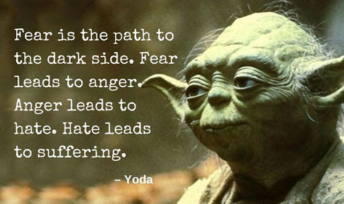 “Fear is the path to the dark side… fear leads to anger… anger leads to hate… hate leads to suffering.”