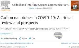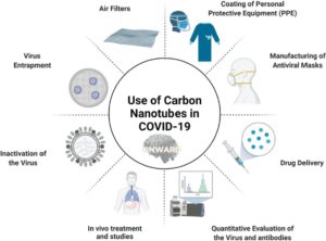 “Notes: The utility of Carbon nanotubes in the prevention, diagnosis and treatment of covid-19. This review encompasses the various biosensor and nano-biosensors employed in the prevention, diagnosis and treatment of SARS-CoV-2 infection. The prime focus of this review is to summarize and critically review the recent advancements in Carbon nanotubes-based biosensors for a spectrum of uses amid the covid pandemic.”