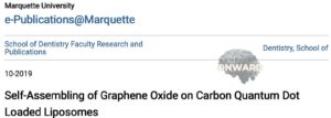 Self-assembling of graphene oxide on carbon quantum dot loaded liposomes. Interestingly, this is from the faculty of dentistry at Marquette University, Milwaukee.