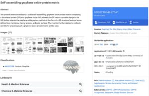 Here we have US patent number US20210346570A1 for “Self-assembling graphene oxide-protein matrix”.