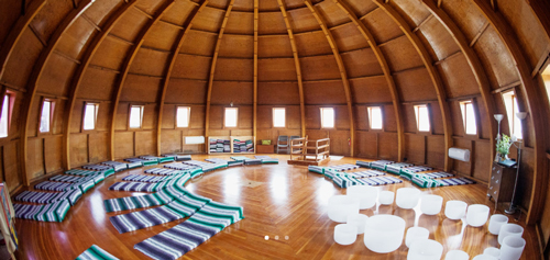 The white wood-domed structure sits four stories high and 55 feet in diameter, just off Twentynine Palms Highway in Landers, California, about an hour north of Palm Springs. According to Van Tassel, the site was determined by its relationship to the Great Pyramids in Giza as well as its proximity to magnetic vortices.
