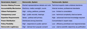 - Technocracy: Authority rests with experts – scientists, engineers, and technocrats – selected for their expertise and technical competence. Governance prioritizes efficiency and data-driven solutions over democratic inputs.