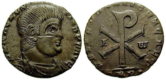 This is another symbol that I thought a lot about when seeing it in front of me at Sunday mass on the altar cloth etc. trying to understand its meaning. I was thinking maybe the P is for Peace and the X is like the x in the word Pax – peace. I studied Latin at school. But no not! The Chi Rho is the symbol of the archon Constantine the Great the Archon who created the Christian cult, found on coins of that time etc.