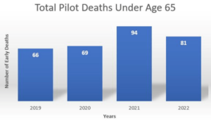 What is significant, however, was the 40% rise in the incidence of pilots dying prior to the normal retirement age of 65. This increase occurred in the year 2021. Until proven otherwise, the mandated covid injection is the cause.