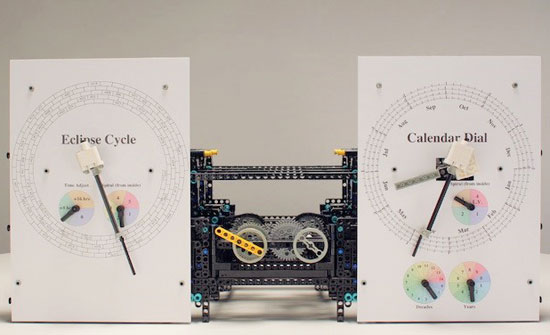 It even has a black and white stone that turns to show the phases of the Moon. Andrew Carol, an engineer from Apple, built a (much bigger) working model of the device using Lego to demonstrate its operation.
