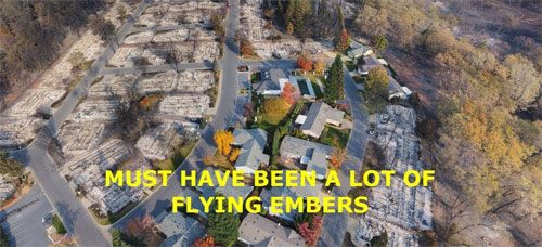 The giveaway clue that DEW was used in Santa Rosa and Paradise is the way that specific homes were burnt along property lines. Some houses were untouched with fresh produce out front, or orange trees in the backyard, next to houses which were razed to the ground.