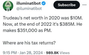 In Canada for example, crime minister Justin Trudeau’s net worth in 2020 was $10 million, at the end of 2022 it rose to $352 million. He only earns $351,000 a year. He made his money by forcing Canadian taxpayers to buy toxic vaccines from companies whose shares he owns. This pattern has been repeated all across the world.