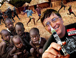 Bill Gate’s massive wealth from selling computers is being redistributed to pharmaceutical research, as human rights-violating corporations such as Merck and GlaxoSmithKline test out new vaccines on multiple thousands of unsuspecting victims.