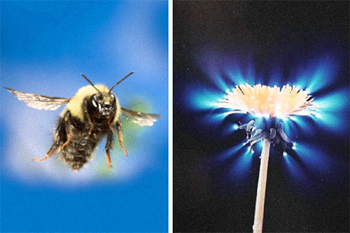‟Dominic Clarke and Heather Whitney from the University of Bristol have shown that bumblebees can sense the electric field that surrounds a flower. They can even learn to distinguish between fields produced by different floral shapes, or use them to work out whether a flower has been recently visited by other bees. Flowers aren’t just visual spectacles and smelly beacons. They’re also electric billboards.ˮ ~ National Geographic
