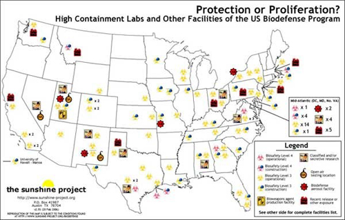 On top of that there are dozens more BSL 3 laboratories. The map below was published in the journal Science in 2007 and reprinted in Asia Times April 6, 2020, showing the proliferation of high-containment labs in the U.S. A USA Today investigation published in 2015 put the number of BSL 3 and 4 labs in the U.S. around 200, and Boyle estimates there are about 400 worldwide.