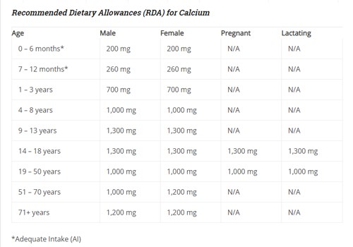 Below are the Recommended Dietary Allowances (RDA) set by the Food and Nutrition Board of the Institute of Medicine. Your specific needs may vary, so contact your healthcare professional for advice.