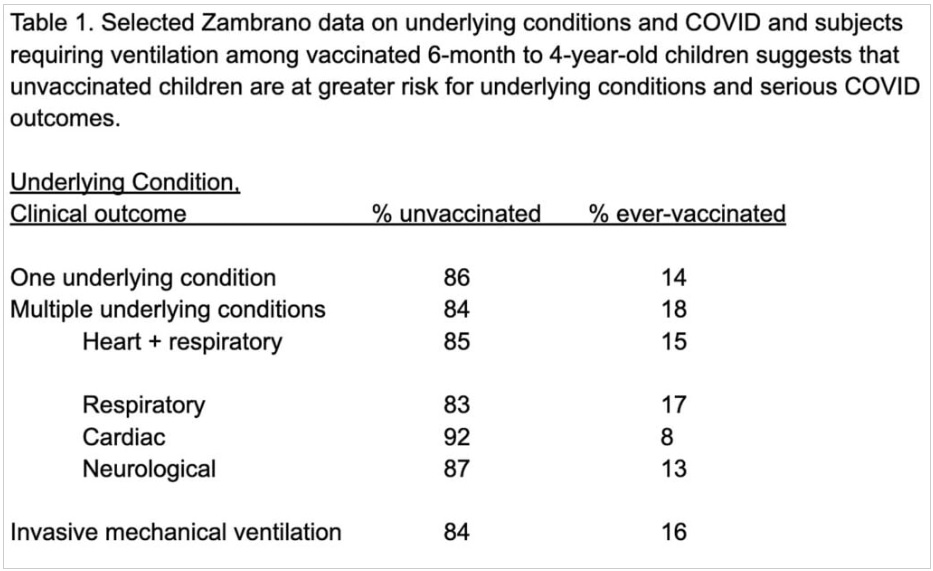 Investigators concluded that most children hospitalized for covid, including most children with underlying medical conditions, were unvaccinated. On that basis, they called for “strategies to reduce barriers to vaccine access among young children.”