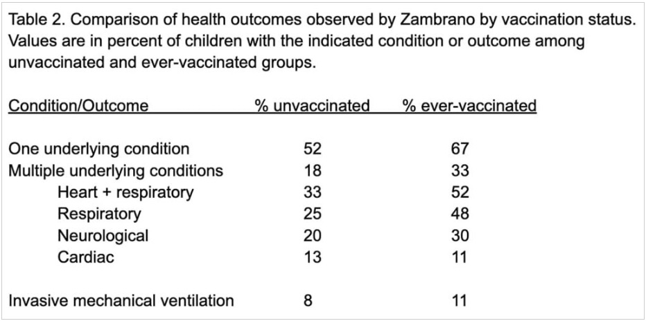 These calculations say nothing about the relative outcomes for vaccinated and unvaccinated children because Zambrano et al. either did not perform the relevant calculation — number of cases in each group divided by the number of subjects — or chose not to report the results it generated.