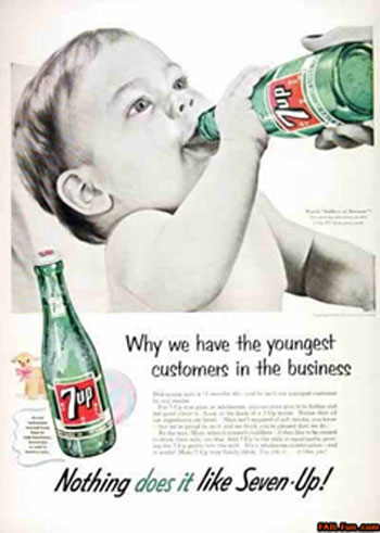 Strange old 7up ad using the cuteness of babies