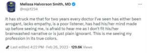 Dr. Smith has been shocked by the horrible treatment she has received from her physician colleagues as a covid-19 vaccine injured patient.