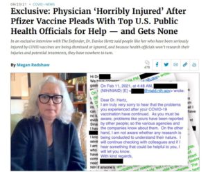 Dr. Danice Hertz, a 64 year old physician was “horribly ill” and “incapacitated” after getting Pfizer’s covid-19 mRNA vaccine. Her story is here: