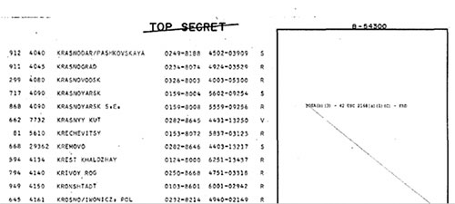 The formerly Top Secret nuclear targeting document lists the following areas of Moscow for nuclear bombardment: Bykovo airport, central Moscow, Chertanovo, Fili, Izmaylovo, Khimki, Kuchino, Lyubertsy, Myachkovo airport, Orlovo, Salarevo, Shchelkovo, and Vnukovo airport.