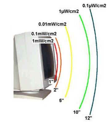 Figure 3The monitor in Figure 4a is an old 13 inch made by TTX. It has no emission reduction on the face of the screen. A person using this monitor should sit at least 19 inch (approx. 50 cm) back from the screen to reduce their exposure to a safe level. The Viewsonic 17 inch monitor in Figure 4b is a low emission type. The radiation level is safe beyond 10 inch (25 cm).